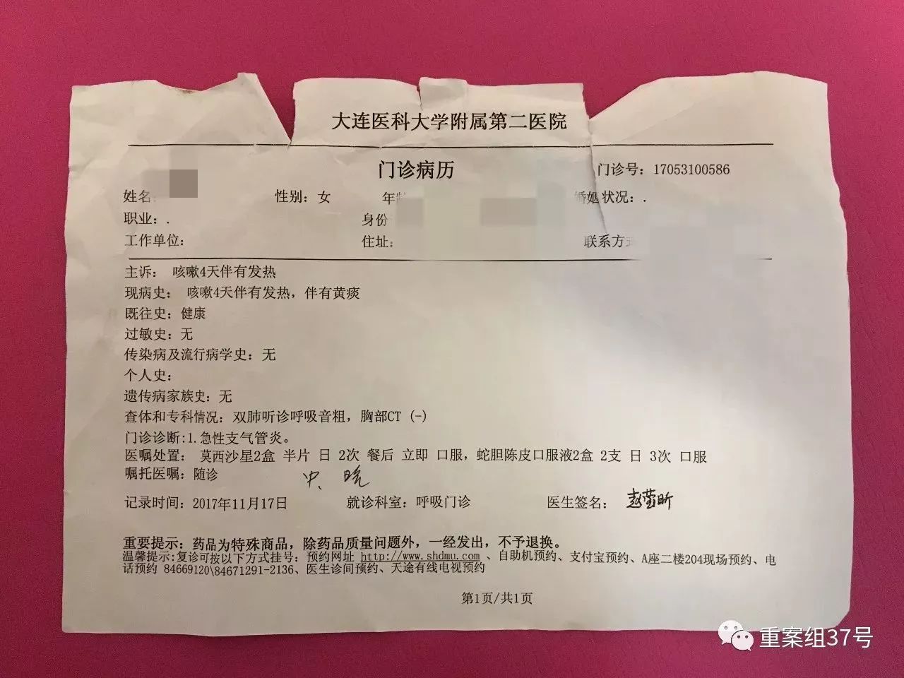 十多天后,張嘉佳在北京安達(dá)醫(yī)院就診時(shí)被診斷為“上呼吸道感染”,也有其他鄰居被診斷出“雙下肺紋理增強(qiáng)”等呼吸道疾病。